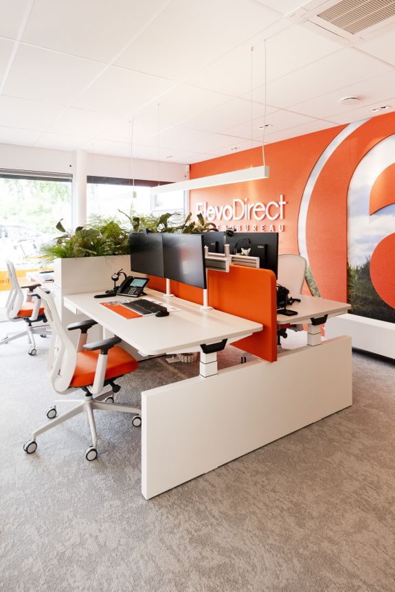 Bij FlevoDirect waren ze toe aan een frisse start. Met hun wensen in gedachten heeft onze interieurarchitecte Iris een passend ontwerp gemaakt. We zijn begonnen met het slopen van de oude wanden, vloeren en plafonds, en ook de trapbekleding moest eraan geloven. Maar dat was nog maar het begin. Vervolgens hebben we nieuwe scheidingswanden geplaatst om de ruimte beter in te delen. En die nieuwe glazen systeemwanden? Die zorgen echt voor een open en modern gevoel.