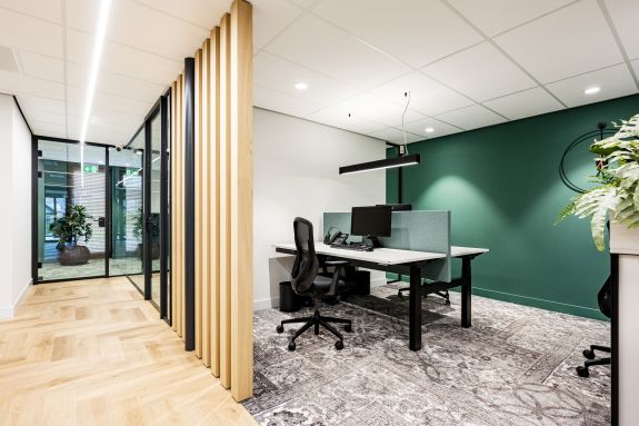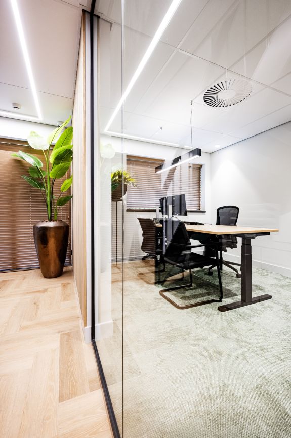 Dat een administratiekantoor niet oubollig hoeft te zijn, bewijzen ze bij HGS. Elke ruimte heeft een eigen karakter gekregen tijdens deze kantoorrenovatie. Omdat het voor HGS belangrijk is dat er voldoende privacy is, begonnen we met het plaatsen van metal stud voorzetwanden en scheidingswanden. We hebben ook gezorgd voor nieuwe vensterbanken, plafonds, en natuurlijk de juiste verlichting.
