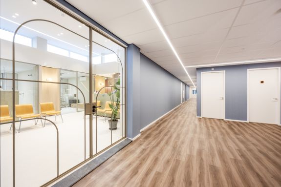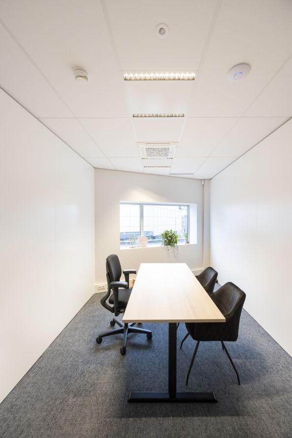 In nauwe samenwerking met de klant ontwikkelden Iris en Elise een interieurconcept waarin functionaliteit en uitstraling samenkomen. De nieuwe indeling en het ontwerp sloten naadloos aan op de behoefte om verschillende typen huurders te kunnen bedienen. Na een intensief ontwerptraject begeleidden we het volledige proces, van het metal-studwerk en stucwerk tot schilder- en timmerwerk. Ook de sanitaire voorzieningen, systeemplafonds en systeemwanden (glas en staal) zijn door ons gecoördineerd en uitgevoerd. Het resultaat is een eigentijdse, flexibele kantooromgeving met een frisse, professionele uitstraling. Dankzij de zorgvuldige uitvoering is de ruimte nu klaar om te worden verhuurd en om toekomstige huurders een comfortabele en representatieve werkplek te bieden.